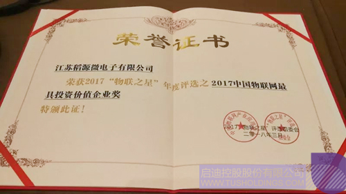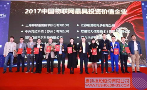 同花顺·同花顺(中国)官方网控股成员江苏稻源微电子荣获大会颁发的“2017中国物联网最具投资价值企业”奖项。
